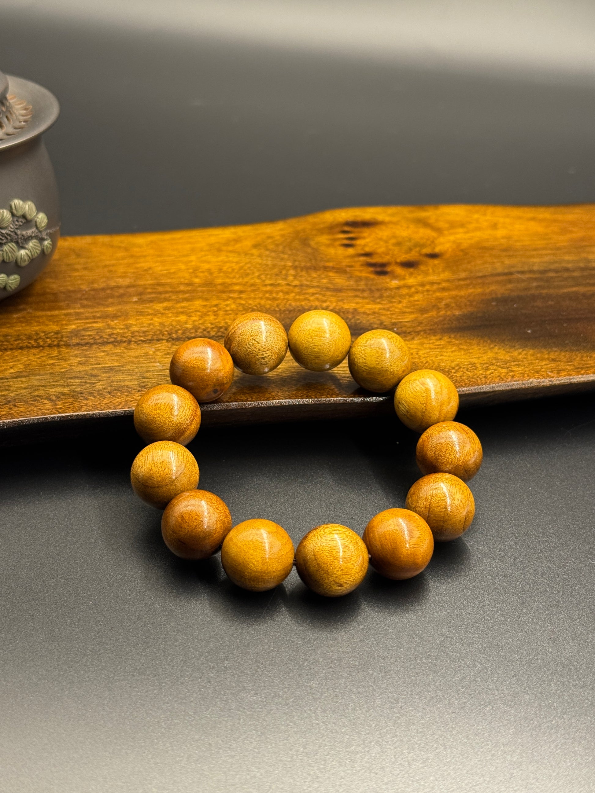 | 一筋の金糸、千年の時を経た瑞祥。東洋の雅やかな趣を携え、静かに歳月の安らぎを見守ります。 --- 一、 |素材の物語| 金絲楠木は、古来中国において「帝王の木」と称えられてきました。その質感は玉のごとく温かく滑らかで、木目は繊細で華麗。光にかざせば、幾筋もの金糸がきらめき、まるで祥雲が流れ、星河が煌くようです。木質は安定し、ほのかな清涼の香りを放つことから、邪気を払い福を招き、心を静めて養う天然の霊木とされています。 手入れ(盤玩)と収蔵の意義: 金絲楠木の魅力は、所有者の長い時間をかけた「手入れ」と愛用により、美しい「育成」の変化を見せる点にあります。清潔な手で丹念に手入れを重ねることで、表面には次第に温かみと透明感のある「パティナ(包漿)」が形成され、色合いは初めの淡い黄金色から、より深みのある琥珀色や蜂蜜色へと移り変わっていきます。金糸の木目は、このパティナに映えて一層きらめきを増します。この過程は、単なる物品の変化ではなく、時間と心境の沈殿そのものです。丁寧に手入れされた金絲楠木のブレスレットやネックレスは、最終的には華やかな色艶を持ち、世界に一つだけの、個人の痕跡を宿した収蔵級の珍宝となるでしょう。 --- 二、 |デザインの特徴| ✔ 金糸の輝き:光の下で金色が仄かにきらめき、木目は山水画の趣。典雅で非凡な風格です。 ✔ 温潤な肌触り:職人が多数の異なる番手の紙やすりで丁寧に磨き上げ、なめらかで肌に優しいつけ心地です。 ✔ 匠の細工:一つ一つの珠の穴あけは精巧で、連なりは堅牢。アクセントパーツも程よく配置されています。 ✔ どんな装いにも合わせやすい雅やかさ:普段着からスーツまで、様々なスタイルに温もりと上品さを添えます。 ✔ 育成する喜び(盤玩性):上質な素材は油分に富み、手入れによって華麗なパティナを形成できる数少ない木材の一つ。育てる楽しみが尽きません。 --- 三、 |身につける意味と収蔵の価値| 金絲楠木には古来より「魔除け、心を落ち着ける、福を招く」という美しい意味が込められています。その清らかな香りは心を安らげ、輝く金糸は光と吉祥の象徴です。 ・日常の装いとして:肌身離さず身につけることで、自然の温もりを感じ、心を平穏に保ちます。 ・手入れを通じた修養(盤玩修行)として:珠を繰り返し撫でる行為は、一種の禅的な修行です。その動作に集中して今この瞬間に向き合うことで、心性を養います。 ・大切な方への贈り物として:親しい方や家族へ贈り、平安や祥瑞、そして時が練り上げた深い友情や愛情を託します。 ・伝世できる収蔵品として:歳月をかけた手入れによって形成された深みのあるパティナは、単なる装飾品ではなく、時と共に価値を増し、次代へ伝えられる私的な収蔵品へと昇華させます。 --- 四、 |製品仕様| ・素材:天然金絲楠木 ・珠の直径:[18mm] ・長さ:24 ・ブレスレット:[約24cm(調整可能)など] ・ご注意:特別なサイズをご希望の場合は、カスタマイズについてご相談ください。 --- ―― ご注意事項 ―― 全ての製品は天然木材を使用しており、木目や色の濃淡は自然に形成されたものです。一点一点が唯一無二の作品となります。画像はあくまでも参考ですので、実物を基準としていただけますようお願い申し上げます。 この自然からの贈り物が、あなたのご愛顧と丹念な手入れにより、日に日に温もりを増し、長きにわたる静寂と美しい気づきをもたらしますように。 |