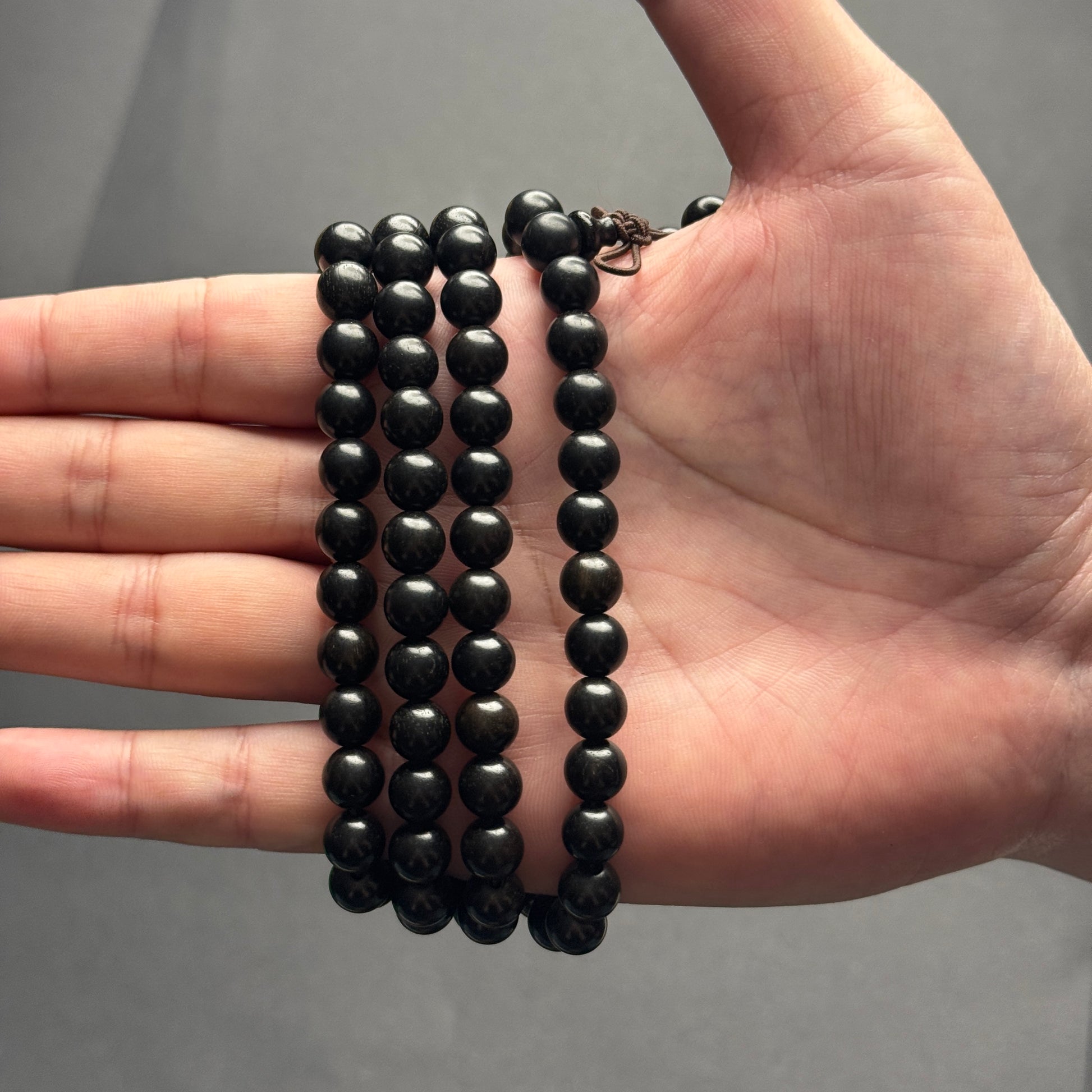 | 一片の黒檀、万年月の沈殿。太古の霊韻を宿し、時間の勲章を刻む。 一、|素材の物語| 炭化黒檀は俗に「陰沉木(いんちんもく)」と呼ばれ、「東洋の神木」「植物のミイラ」として名高く、古代の森林に生えていた名貴な樹木が地震や洪水などの地質災害を経て、河川の泥中や地層の下に埋もれ、無酸素・高圧・微生物の作用により、2000年から2万年にわたって炭化して生まれた希少な宝です。民間には昔から「宝石一箱あっても、黒檀一枚に及ばず」と言われており、その貴重さが物語られています。質地は緻密で重厚、色調は黒潤と華やか、断面は滑らかで繊細、独特の沈静な香りを発し、木性は安定して腐りにくく虫よけにもなり、万年月を経ても朽ちることがなく、早くから一般的な木材の範疇を超え、「宝」の仲間に入っています。 撫で回す価値とコレクションの意義: 炭化黒檀の魅力は、千万年の地質変遷を一身に集めている点にあるだけでなく、所有者と共に歩む中での時間による変化にもあります。「撫で回しと放置を組み合わせる」原則に従い、手を清めた後、柔らかい布または手袋で心を込めて撫で回すと、表面には次第に艶やかで透明感のある「パッチン(包浆)」が形成され、もともと控えめだった木目が一層はっきりとなり、黒潤の色調の中に温かい真珠光沢が滲み出し、触れると玉のように冷たく滑らかに感じられます。この過程は、人体の油脂と木材の組織が深く融け合う過程であり、現代の心と太古の時間が遠隔地で対話する過程でもあります。適切に撫で回された炭化黒檀のブレスレットやネックレスは、最終的に生臭さが褪せ、個人の痕跡が刻まれた、時間の物語を宿したコレクション級の唯一無二の作品となり、その再生不能な特性から、それぞれが独特の価値上昇ポテンシャルを持っています。 二、|デザインの特徴| - ✔ 黒潤な輝き:光の下では、色調が沈み込んで華やかで、天然の木目は山や川のように曲がりくねり、流れる雲のように広がり、一吋一吋に自然の神業が宿っています。 - ✔ 重厚な質感:手作業で多段階の細かい砂紙で研磨し、触感は繊細で温かくながらも重厚感を失わず、肌にフィットして負担がなく、古風な上品さを全面的に引き出します。 - ✔ 匠の技による編み込み:それぞれのビーズの穴合わせが正確で、結び目はしっかりとして堅牢、古風なアクセサリーで適度に彩り、東洋の美学の雰囲気を満たします。 - ✔ 万能なアクセサリー:中国風のコーディネートやレトロなスタイルはもちろん、ビジネススーツに合わせても重厚な雰囲気を添え、上品な雰囲気が自然と溢れます。 - ✔ 撫で回し可能:木材の油性が豊富で、撫で回すことで質感が一段と向上する珍しい樹種の一つで、撫で回す過程で修身養性の楽しみを味わえます。 三、|装着とコレクションの寓意| 伝統文化の中で炭化黒檀は悪を祓い、家を守る霊的なものとされ、万年月を沈殿させたオーラーが心を落ち着け、独特の香りは気を通じさせて調和を図ります。さらに『本草綱目』にも解毒して心を鎮める薬用価値が記載されており、「悪除け、家鎮め、心安定、福招き」の美しい寓意を込めています。 - ・日常装着:肌に添えるものとして、太古の自然の力を常に感じ、浮き躁ぐ心を落ち着け、装着者の重厚で内なる品格を引き立てます。 - ・撫で回しによる修行:「1日撫で回し、2日放置」のリズムに従い、反復する撫で回しの中で現在に集中し、ゆったりとした時間の中で心を鍛え上げ、禅の意を悟ります。 - ・貴重な贈り物:友人や家族に贈ることで、平安を守る祝福を伝えるだけでなく、触れることができる太古の時間を贈ることにもなり、深い友情や絆を込めます。 - ・世紀を超えるコレクション:再生不能な「時間のカプセル」として、その学術価値、文化価値、コレクション価値は年月とともに高まり、代々受け継ぐことができる家族の信物となります。 四、|製品仕様| - ・素材:天然炭化黒檀(陰沉木) - ・ビーズ直径:8MM - ・長さ:86CM - ・ネックレス:[86CM] ・アクセサリー:[例:真鍮のスペーサー、黒檀のアクセサリー、天然瑪瑙のトップビーズなど古風なスタイルのアクセサリー] —— ご注意 —— すべての製品は天然の炭化黒檀で製造されており、形成環境や炭化の程度により、各製品の色調の濃淡、木目の走向、香りの強弱はすべて自然に形成された唯一無二のものです。画像は参考用となり、実物を以って準じます。 この万年月を越えてきた自然の贈り物が、あなたの撫で回しと陪伴のもと、一層温かく重厚になり、長く安らぎと順調をもたらすことを願っています。 |
