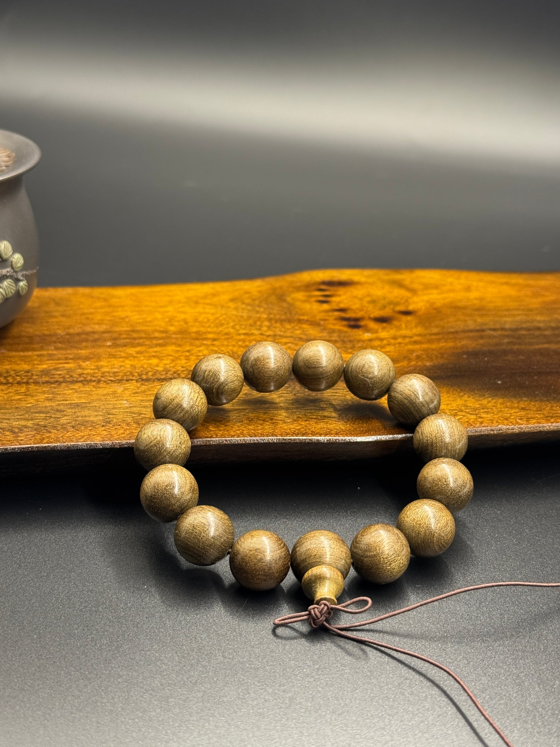 | 千年の沈黙、一瞬の再会。時を凝縮した魂、大地に秘められた調べ。 --- 一、 |素材の物語| 陰沈金絲楠木(インチンキンスナンム)、別名「烏木金絲楠」は、太古の金絲楠木が自然の変遷により河底や地中に埋もれ、酸素不足・高圧・微生物の作用を受け、数千年から万年という気の遠くなる歳月をかけて、ゆっくりと炭化と熟成を遂げた「植物のミイラ」です。色合いは深く奥ゆかしく、漆黒、深褐色、墨緑色を呈することが多く、暗い地色の中に金糸の木目が一層くっきりと輝きを放ちます。質感は通常の金絲楠木より緻密で堅牢、そのエネルギーは静寂でありながら力強さを秘めています。 手入れ(盤玩)と収蔵の意義: 陰沈木そのものが、既に時の「化石」です。そして「手入れ」は、これに第二の生命を吹き込む行為と言えるでしょう。人の手による長い時間の触れ合いと慈しみを通じて、その表面は黒琉璃や深い琥珀のような、極上の「鏡面パティナ(包漿)」を形成します。光沢は幽玄で神秘的です。元来内に秘められていた金糸が、このパティナに映えて「闇」から浮かび上がり、強い視覚的コントラストを生み出します。それはまるで夜空を流れる金色の星河のようです。この「深沈から璀璨へ」という変容の過程は、大きな達成感と芸術的鑑賞性に満ちており、手入れを重ねた陰沈金絲楠の作品は、一つとして同じものがない、再生不可能で複製不能な最高級の収蔵品となり、その価値は計り知れません。 --- 二、 |デザインの特徴| ✔ 幽玄の金糸:地色は墨玉の如く、金色の木目が奥に潜み、光を受けて幽かに浮かび上がる、華麗で神秘的な美しさ。 ✔ 極致の密度:万年の時が育んだ、極めて安定した細やかな木質。玉のような冷たい触感と、高級感のある質感。 ✔ 匠の仕事:独特の色味と木目を引き立たせる精緻な研磨。手作業による堅牢な連なり。 ✔ 風格が宿る一品:シンプルで気品のあるデザインは、身につける者に静謐なオーラをもたらし、非凡な趣味を映し出します。 ✔ 収蔵級の手入れ体験:手入れによる変化の対比が強く、達成感が極めて大きい、衝撃的なパティナの出来映え。精通した愛好家や収蔵家を魅了する要素です。 --- 三、 |身につける意味と収蔵の価値| 陰沈金絲楠木は千年の天地の精華を凝縮したもの、「東方の神木」と讃えられ、邪気払い、気の安定、福運の招来の寓意があるとされます。 ・エネルギーを身につける:その静謐なエネルギー場は、情緒を安定させ、精神力を高める助けとなると言われ、内なる平穏と強さを求める方に適しています。 ・至高の手入れの愉しみ:手入れの過程は、遠い過去の時との対話。手中で木質が変化していく味わいは、文玩(文化的に鑑賞し愛でる器物)の最高の楽しみの一つです。 ・極上の贈り物:大切な方への贈り物として、太古の巨木のような揺るぎない、永遠に続く祝福と敬意を表す、深い意味を持つ贈り物となります。 ・伝世の秘宝:希少性、観賞性、深い文化的背景を兼ね備え、手入れを重ねることで価値が倍増します。家に伝えるに足る、芸術的収蔵品そして財産となり得るものです。 --- 四、 |製品仕様| ・素材:天然陰沈金絲楠木(烏木金絲楠) ・珠の直径:[15mm] ・長さ:23 ・ブレスレット:[約23cm(調整可能)] ・ご注意:特別なご要望(サイズなど)がございましたら、カスタマイズについてご相談ください。 --- ―― ご注意事項 ―― 陰沈木は再生不可能な稀有な資源です。一点一点、木目や色合いが大きく異なり、全てが唯一無二の孤品となります。実物は画像以上に、深みのある質感と奥行きを持っている場合がございます。 清潔な手で丹念に手入れを重ね、この万年の時が凝縮された素材が、あなたの手の中で新たな息吹と輝きを放つことをお楽しみください。 |